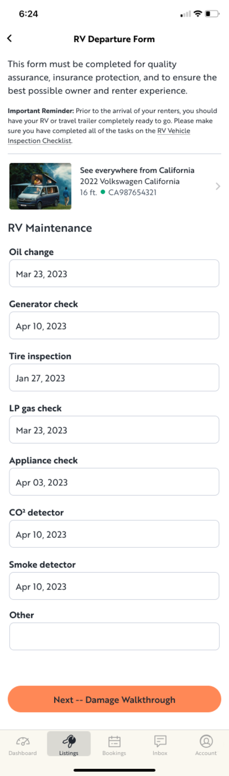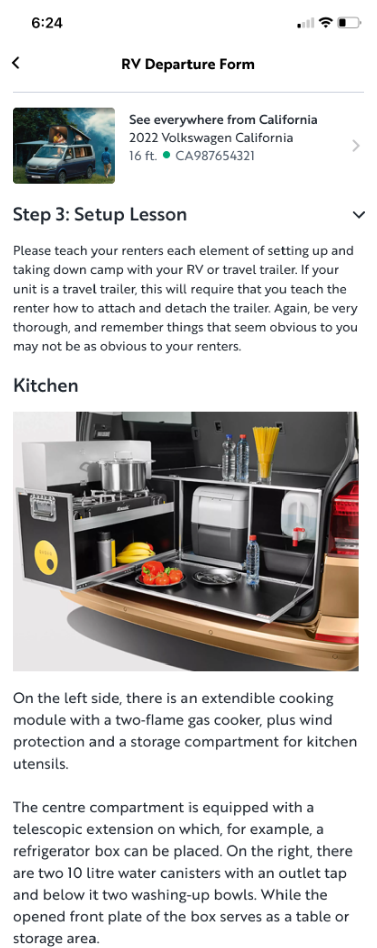 Within the Outdoorsy Owner mobile app, an RV owner could document and store their rental vehicle in full detail, providing custom-written set-up instructions for every aspect of the rental. And document any pre-existing wear, damage, or inconsistencies.